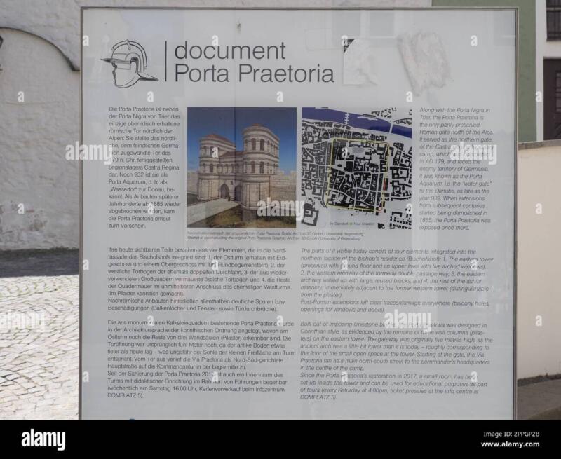 Weitere Informationen zur Porta Praetoria finden Sie auf der offiziellen Tourismus-Webseite von Regensburg unter https://tourismus.regensburg.de/fuehrungen-rundfahrten/document/document-porta-praetoria.html über Führungen und Rundfahrten in Museen der Region an, was zu Verbesserten Kentnissen zu Archäologisches Denkmäler dient.